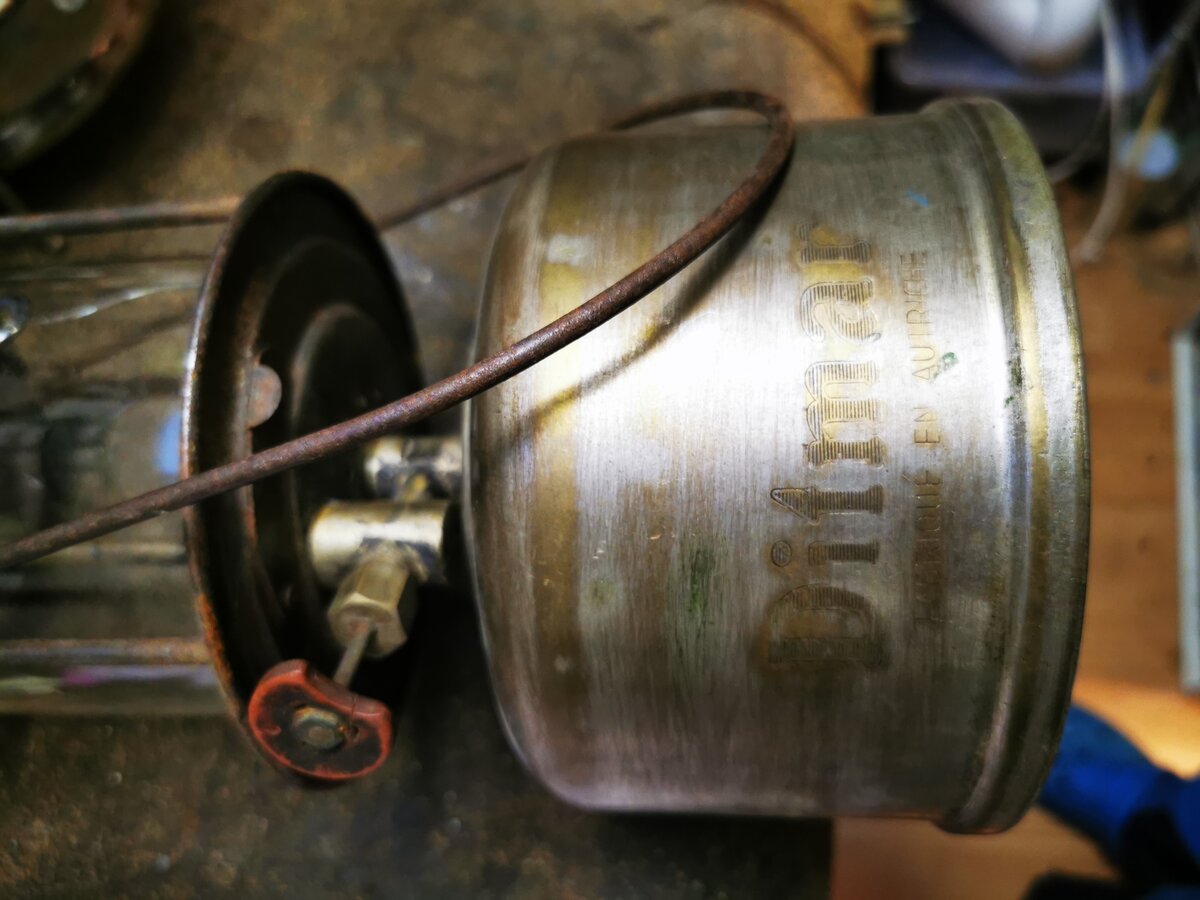 Hi! This lamp is incomplete but i managed to make it working. I need to find a right cleaning needle, the one it have is worn and to short. I didn't found any number on it, but the vaporizer is the same as the one on this lamp 1934 Ditmar Maxim N° 503 I can pierce the jet with a 200cp needle (from radius 143), the 300cp (from radius 119 is to thick) so i believe it's a 200cp lamp. The jet is similar to the one from coleman 200 early type. I'm missing the hat (i believe that is 2 parts hat), probably a priming cup (or a heat deflector) and a ring between the glass cage and the tank (I'm going to try to put a Radius 119 ring). Some cleaning needles someone? Cheers, Francisc