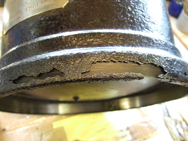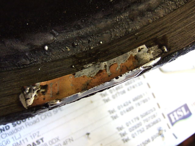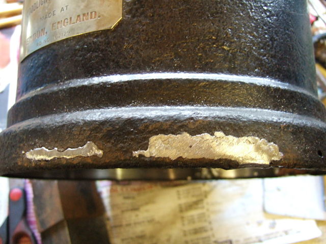Hi All Here is the next instalment in the FL-6 saga , "The rusty rim repair" Steel banding was pressed & held in place by clamps until a key was placed in the gap to fully push the band tight , this was then spot welded into place on the best part of the inside edge giving me something solid to do the repair work with Next job was to make up some repair patches from brass shim , i could have made some steel ones but the proximity to the base plate soldering & the condition of the rusty areas made this a bit risky & spot welding here would blow right through even on low power so i decided to do it the old fashioned way First i tinned the patches & the clean steel band then carefully sweated them into position. Using the large soldering iron i loaded/filled the patch edges with lead solder to make up the thickness & fill in the gaps this was also done in the large holes where brass shim was slipped inbetween the band & the rusted areas to help the lead repair adhere here too , & to finish a smear of chemical metal which will be sanded back & the first coat of primer applied Still plenty to do but the fount is now in much better condition & the restoration can continue , i think i can see light at the end of the tunnel Best regards Stu .