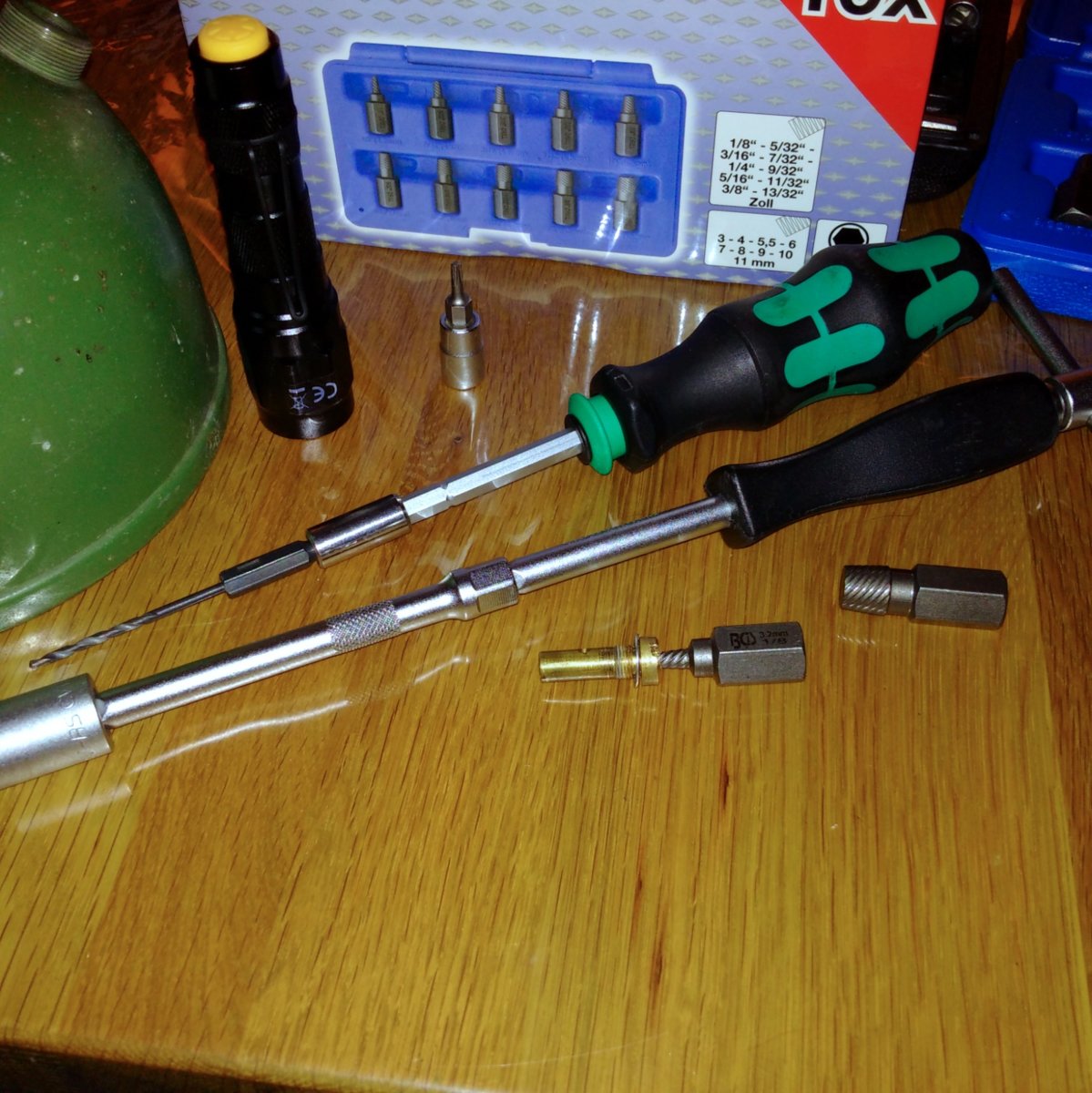 Okay, I now have the easy outs and the extended drill bits. Unfortunately, I checked with Base Camp on the Primus NRV and I'm afraid the price is a bit too high for me. I'll have to look elsewhere. By the way, you guys on the other side of the pond - Remember, remember the 5th of November! Ha, ha! Bonfire night...