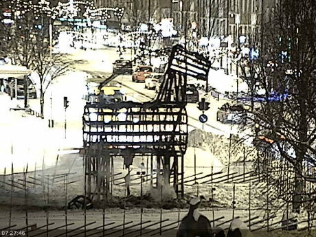 It went as usual. Someone managed to set it on fire tonight. I wonder how they do. the goat was newly sprayed with water to form a really thick layer of ice as a prevention. It can't be that easy to get the fire started, but they have managed before even when it has been fireproofed chemically... (Webcamera)