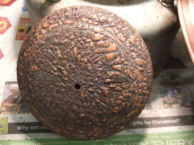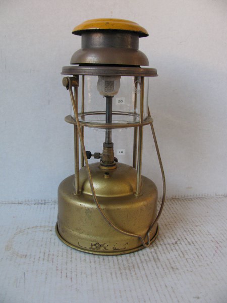 Hello guys (are there girls?) I would like to show you my most recent pressure lamp find. It's a Tilley. I believe it's called a pork pie. When I was cleaning the lantern I realized that I should heve takensome pictures first. The tank had a very dirty spot round the pump. close to the pump at least 1 mm thick. I guess it was all dried up fuel from the pressure releasing. For the rest the tank was quite clean. The dirty spot is cleaned with a cloth and some petrol and at least one hour rubbing. I didn't want to damage the paint since that's in supprisingly good condition. The rest of the lamp (except the orange hat) was all covered with a thick layer of a black substance. It wouldn't come of with petrol. I placed the top part in a caustic soda solution, I use this for my hurrucane lamps too. After 2 hours I wanted to se how far the c.s. did his work. To my spupprise the layer good be whiped of with my finger. I brushed of the dirt and then I cleaned the top part using a little polishing paste on a small sponge. I didn't want to make the brass parts all shiny, wouldn't look good with the tank. After cleaning I made a new gasket for the control cock and the pump. The pump valve was in good order. I placed a new generator on the lamp, one good read a news paper throught the orifice of the old one,replaced one of the air tubes (one with a crack) filled the darling up, preheated her, and there it went. First it glowed only on one side of the mantle, after one minute it glowed all around. Great lamp. As said I replaced one air tube, the replacement came from a Guardsman, straight legs. I noticed that it wasn't exactly the same as the original ones. The replacement threads in further. I shortened it a little and placed a small copper ring between the tube and carburettor. Is it normal that the old air tubes are different from the newer ones? What's the effect when I thread in the "new" air tube all the way? groetnis Henk The cleaner tube is the original one.