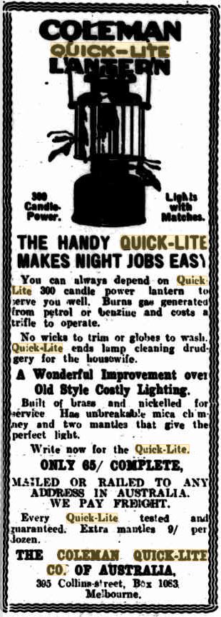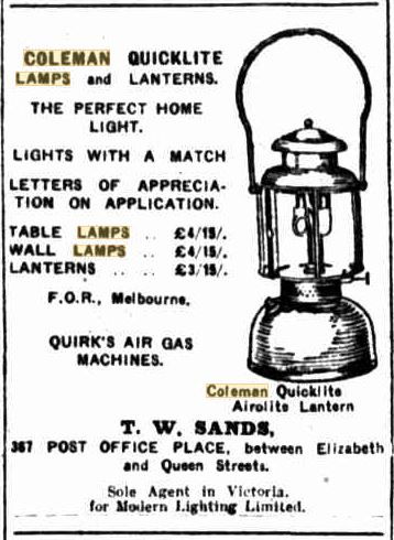 Who manufactured Coleman lamps and stoves in Australia?